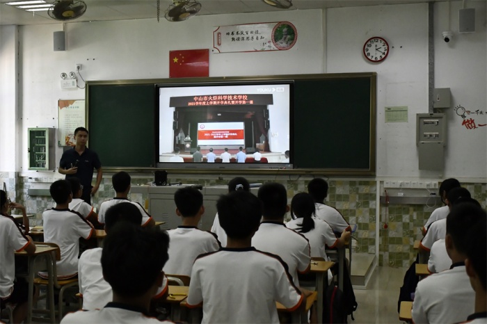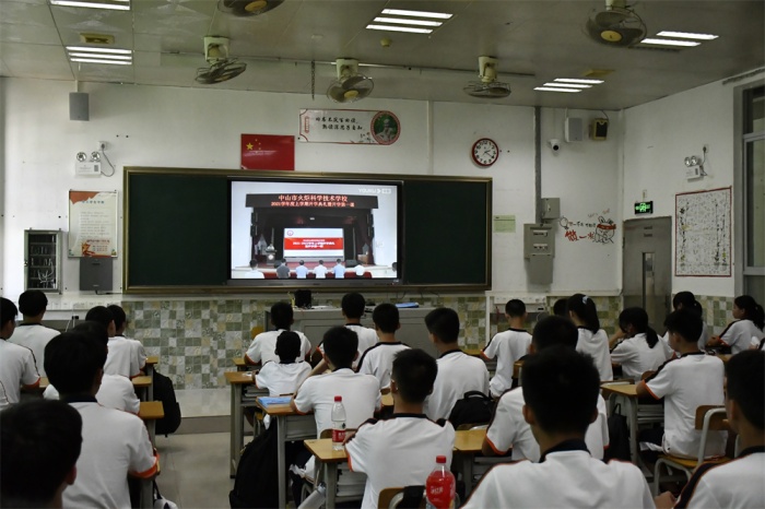 2021年9月10日,中山市火炬科學(xué)技術(shù)學(xué)校2021-2022學(xué)年度第一學(xué)期開(kāi)學(xué)典禮暨開(kāi)學(xué)第一課在南朗校區(qū)紫荊堂舉行,全校師生通過(guò)教室多媒體直播系統(tǒng)進(jìn)行收看。中山市火炬科學(xué)技術(shù)學(xué)校校長(zhǎng)程少輝,中山市反詐騙中心翠亨新區(qū)分中心劉逸澤警官,南朗街道南苑派出所駐校民警鐘潤(rùn)祥警官,以及南朗街道綜治辦、禁毒辦的工作人員等參加了本次活動(dòng),活動(dòng)儀式由學(xué)校德育處副主任袁建主持。