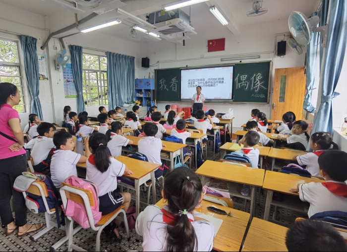 青少年時(shí)期是人們形成世界觀、人生觀和價(jià)值觀的重要階段,偶像崇拜是當(dāng)今青少年精神生活的一部分,是成長的必經(jīng)之路,是社會(huì)化的重要?dú)v程。為了科學(xué)地引領(lǐng)幫助孩子們樹立正確的偶像觀,發(fā)揮偶像們的激勵(lì)作用。9月27日,石岐實(shí)驗(yàn)小學(xué)對全校同學(xué)進(jìn)行了“我看偶像”主題班隊(duì)活動(dòng)。