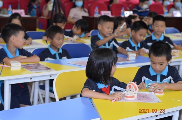 為更好地貫徹落實《學(xué)校衛(wèi)生工作條例》《健康口腔行動方案(2019-2025年)》和《健康中山行動(2020-2030年)》等有關(guān)要求,提高小學(xué)生口腔健康素養(yǎng)水平,降低兒童齲齒發(fā)生率,9月23日下午,2021年中山市教育系統(tǒng)“全國愛牙日”現(xiàn)場宣傳活動暨2021年小學(xué)生口腔健康服務(wù)項目正式啟動,本次啟動儀式由中山市教育和體育局主辦,中山市中小學(xué)衛(wèi)生保健所、南區(qū)馬嶺小學(xué)承辦。中山市教育和體育局三級調(diào)研員容彤、中山市中小學(xué)衛(wèi)生保健所黃思哲所長、南區(qū)教育和體育事務(wù)中心劉敏斯副主任、有關(guān)鎮(zhèn)街衛(wèi)生專干、各項目學(xué)校項目負責(zé)人、馬嶺小學(xué)二年級的師生一同參加了此次活動。