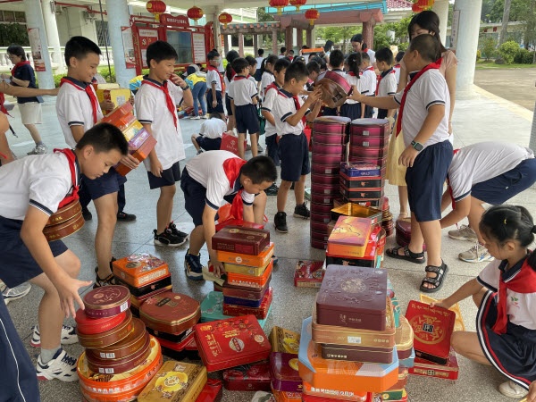 全校師生積極響應(yīng)學(xué)校的倡議,并參與了“綠色中秋餅盒變寶盒,回收換回饋——月餅盒回收”中隊(duì)活動。少先隊(duì)員們紛紛從家里帶回來了各種精美的月餅盒,在各中隊(duì)家長志愿者的協(xié)助下,齊心協(xié)力對月餅盒進(jìn)行了整理和分類,全校共收集到月餅紙盒328個,月餅鐵盒650個,一共978個。