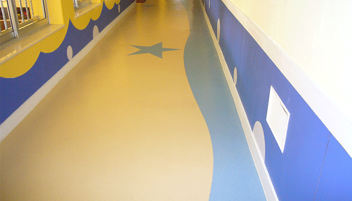 PVC彈性地板色彩豐富,顆粒、斑點(diǎn)或是圖案的設(shè)計(jì)令色彩搭配層次分明。例如在兒童病房,PVC地板巧妙的色彩搭配,無(wú)形中消除了兒童對(duì)醫(yī)院的抵觸心理,起到了“視覺(jué)治療”的作用。